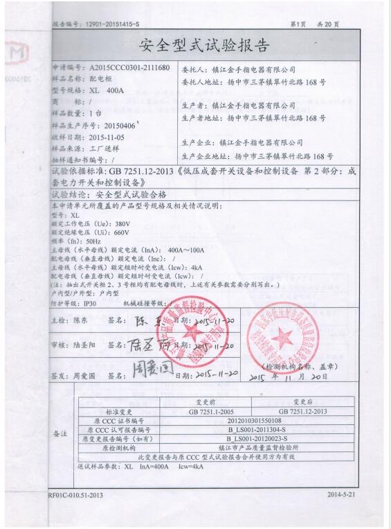 XL 配电柜 (400A) 试验报告